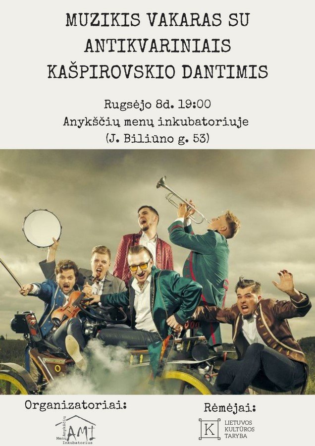 Šių metų rugsėjo 8d. 19:00 vyks MUZIKINIS VAKARAS SU teatrališąja grupė „Antikvariniai Kašpirovskio dantys“.
