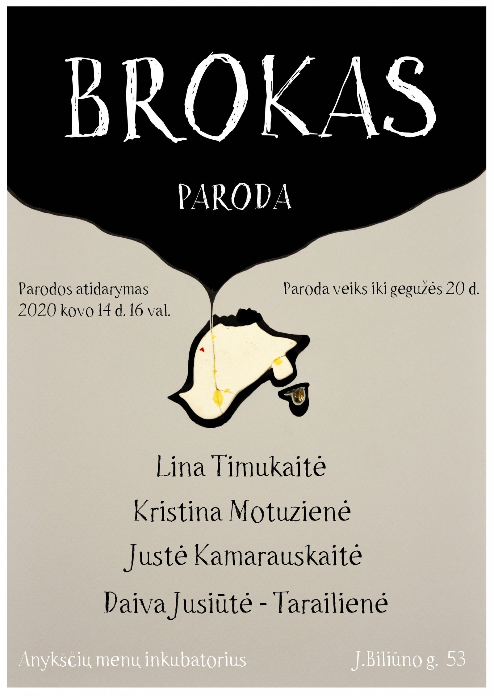 Kaip kuriantys autoriai supranta broką. Taip, tai kas susilankstė, išsirietė, suplyšo, išsiliejo, suskilo, kas akivaizdu – neatitinka planuoto vaizdo. Visgi, kartais „išbrokuojami” darbai būna tiesiog negražūs…nesinori savęs, kaip autoriaus, tapatinti su vienu ar kitu objektu. Išlenda vidiniai perfekcionizmai, kritikai. Imi kabinėtis „prie smulkmenų”. Autorės pristato savo darbe naudojamų medžiagų defektus. Justė – stiklo miniatiūrų, Lina – porceliano ir maišytos technikos elementų, Daiva – lampwork’o, Kristina – keramikos. Įdomu ir tai, kad brokuotus darbus mes dažnai kaupiam, atidedam, laikom. Lyg ir gaila išmesti, lyg ir yra mintis kažkam panaudoti, pabandyti pataisyti… atitaisyti…