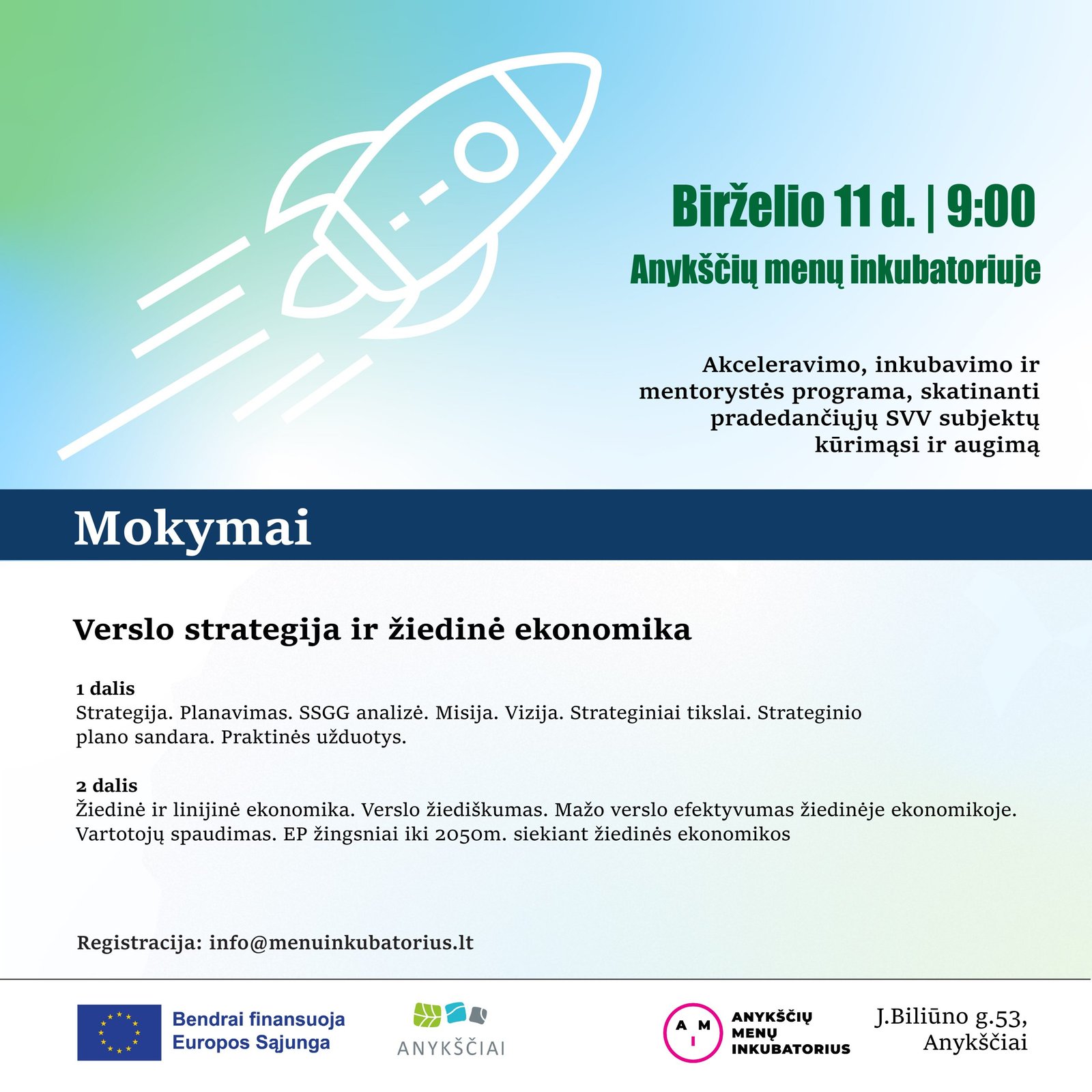 Birželio 11 d. 9 val. Anykščių menų inkubatoriuje (J.Biliūno g.53, Anykščiai)