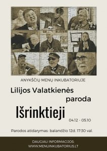 Lilija Valatkienė – žurnalistė, fotomenininkė surengė fotografijų parodą „Išrinktieji“, išleido fotoalbumą „Išrinktieji“, pagamino šiuolaikinių dailininkų kūrinių edukacines dėliones. Šį fotografinį projektą  autorė pristatė Lietuvos dailininkų sąjungos galerijoje Vilniuje 2017-ųjų  lapkritį, atidarydama dailininkų psichologinių portretų parodą „Išrinktieji“. Nuo to laiko edukacinis projektas labai sėkmingai keliauja per Lietuvą.Renginio metu Lilija Valtkeinė ves edukaciją „Sudėliok meną“.